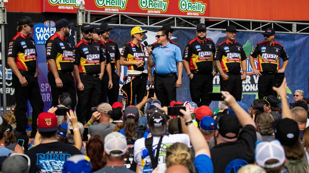Leah Pruett, Driver of the Rush Truck Centers Top Fuel Dragster