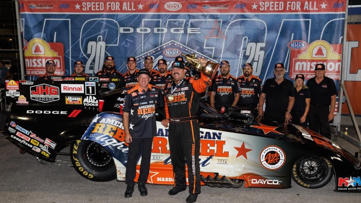 • Hagan represented American Rebel Beer on his Dodge//SRT Hellcat Funny Car. American Rebel Beer was founded in April of 2024 by American Rebel CEO Andy Ross. American Rebel Beer is All Natural, Crisp, Clean and has a Bold Taste with a Lighter Feel. It does not use corn, rice or other sweeteners typically found in other mass-produced beers. American Rebel Beer is currently offered in 15 states (Arkansas, Connecticut, Florida, Indiana, Iowa, Kansas, Kentucky, Minnesota, Mississippi, Missouri, Nevada, North Carolina, Ohio, Tennessee, and Virginia), with additional states being announced soon. You can also find American Rebel in various legendary bars like Kid Rock’s, Tootsies, Honky Tony Central, and many others in the entertainment district in Nashville, as well as retail outlets, venues and music festivals throughout the United States. American Rebel Beer is America’s Patriotic, God-Fearing, Constitution-Loving, National Anthem Singing, Stand Your Ground Beer.