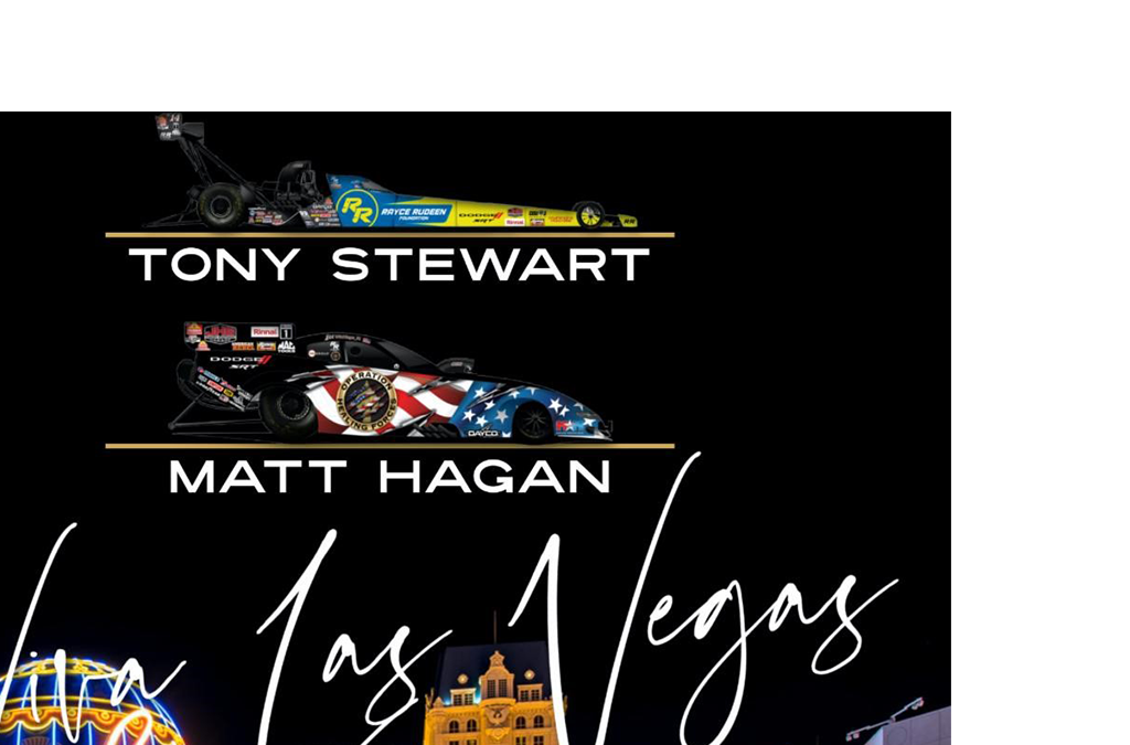 • Stewart enters Las Vegas representing the Rayce Rudeen Foundation on his blue and yellow Top Fuel dragster. Hagan, meanwhile, sports red, white and blue colors of Operation Healing Forces and Shelor Motor Mile on his Dodge//SRT Hellcat Funny Car.