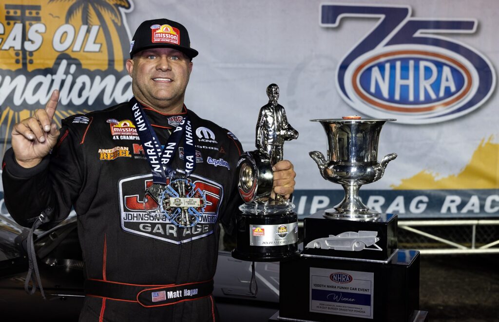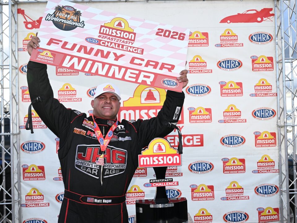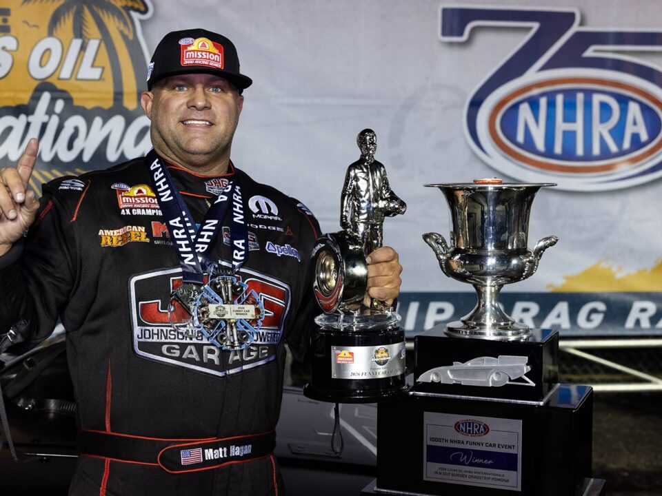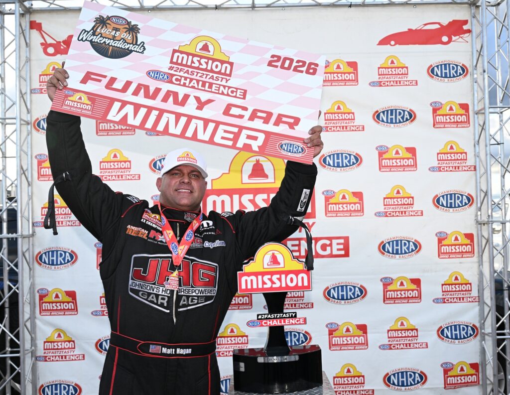 In Funny Car, Matt Hagan, who had three wins in five final round appearances and was only 101 points back from a championship crown in 2025, will also sport the Dodge livery with the Fratzog logo for ten races. Johnson’s Horsepowered Garage, American Rebel Light Beer and Shelor Motor Mile will also be in rotation as primary sponsors as Hagan looks for his fifth world title.